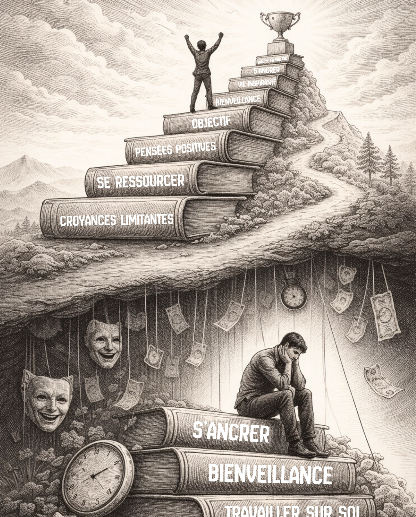 Le vocabulaire du développement personnel s’invite dans notre conversation : « croyances limitantes », « se ressourcer », « s’ancrer », « se recentrer », « travailler sur soi », « pensées positives », « pensées négatives », « objectif », « vie inspirante », « bienveillance »…